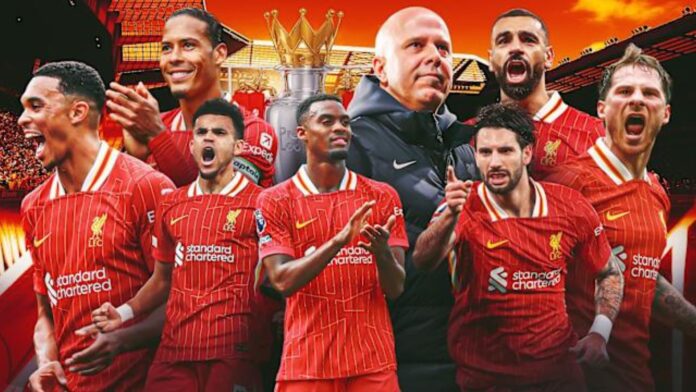 El pasado domingo 27 de abril, el Liverpool se convirtió en campeón de la Premier League tras vencer al Tottenham 5-1. El Arsenal, segundo en la tabla, empató 2-2 con el Crystal Palace, encuentro realizado el 23 de abril, con lo cual, matemáticamente, si los Reds ganaban o empataban el partido de este fin de semana, aseguraban el trono. Con este resultado, el equipo de Arne Slot se coronó campeón con 82 puntos, sin embargo, aún quedan cuatro partidos y pueden seguir sumando puntos. Este es el vigésimo triunfo del Liverpool en este torneo. De esta manera, los Reds igualan al Manchester United en títulos de la liga inglesa.