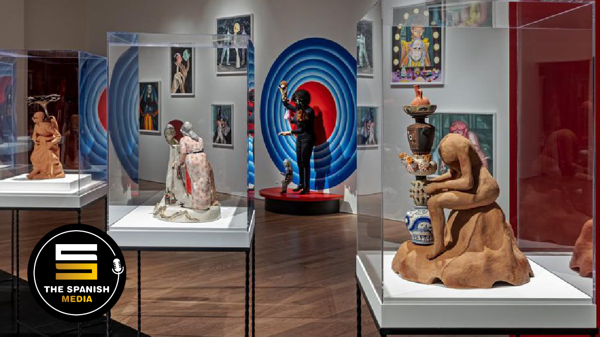 “Outside the Palace of Me”, la primera exposición itinerante canadiense de Boyle desde que representó al país en la Bienal de Venecia de 2013, se divide en ocho secciones inspiradas en varios aspectos del teatro, Boyle se asocia con mayor frecuencia con sus esculturas de porcelana de los gabinetes de curiosidades de la abuela en criaturas folclóricas híbridas que logran ser tanto horribles como seductoras al mismo tiempo. Tres de esas criaturas nos dan la bienvenida cuando entramos, pero no son todo lo que parecen. El humo y los espejos vienen después.